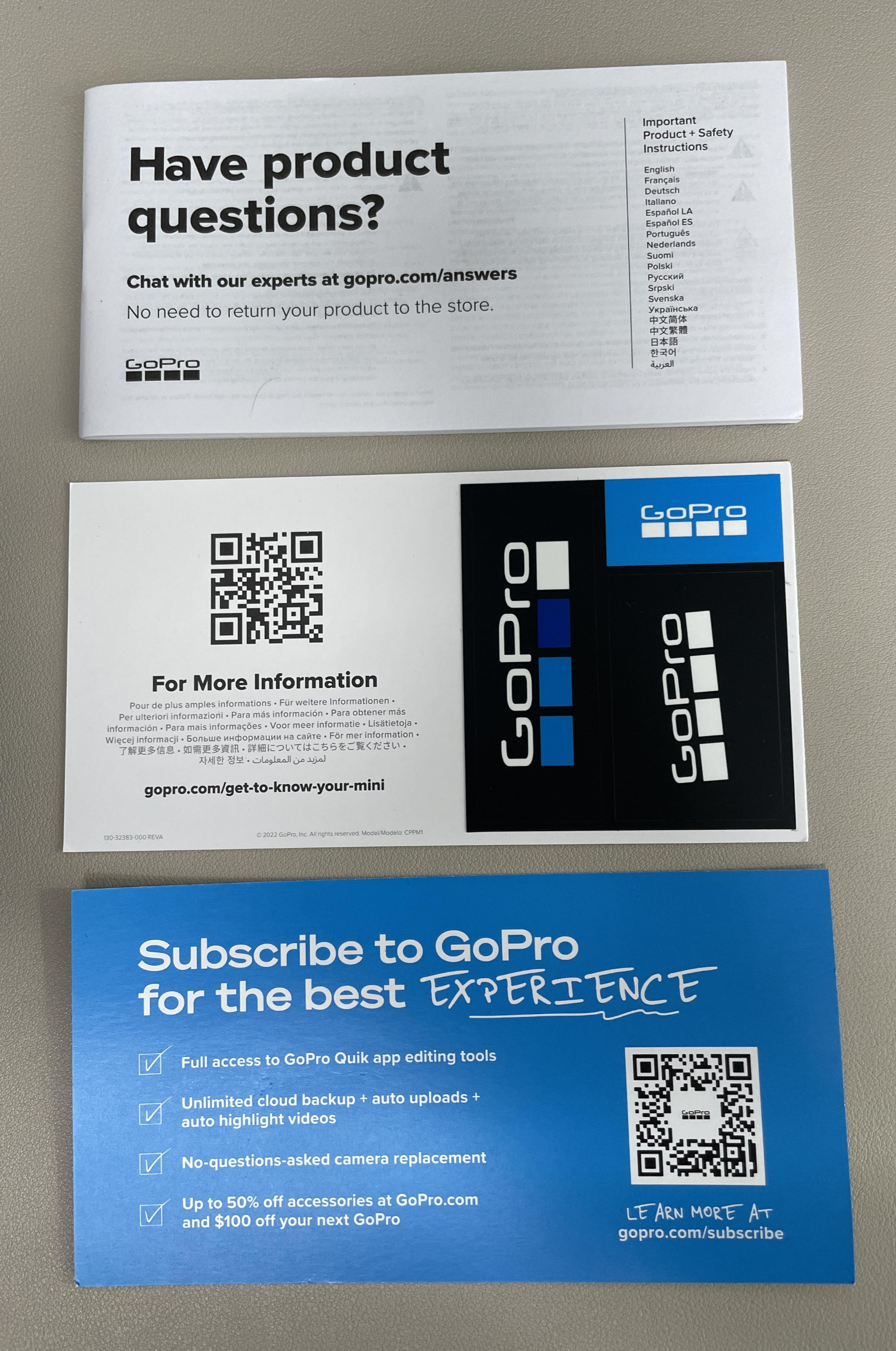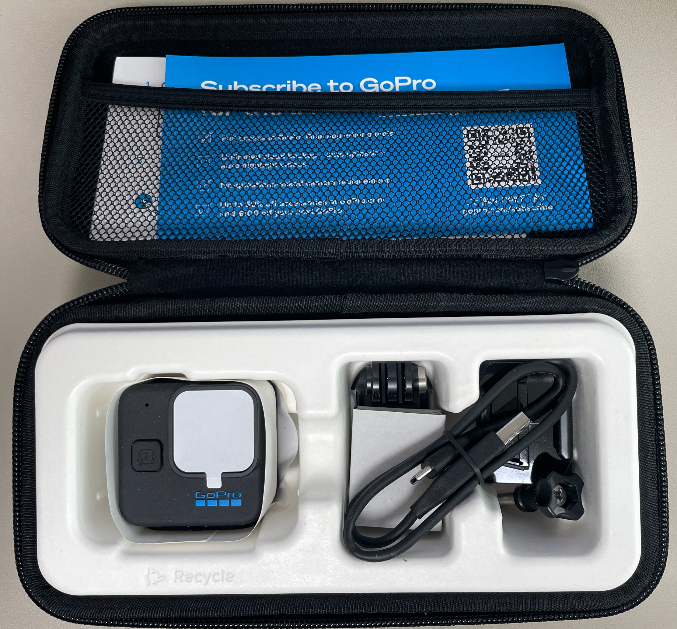 간소한 포장 안에는 이렇게 고프로와 액세서리들을 담은 파우치가 있습니다. 파우치 내부에는 간단한 설명서와 본품, 부착용 액세서리들이 포함되어 있습니다. 고프로 스티커까지 포함하고 있습니다. 익스트림 스포츠에서 고프로가 유명한 이유는 성능도 한몫하지만 홍보를 참 잘하는 것 같습니다. 대회를 추최하고 다양한 선수들의 스폰서를 하면서 익스트림 스포츠를 응원하는 게 고프로는 익스트림이라는 창업 목표에 부합합니다.