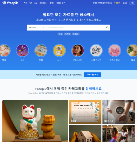 프리픽은 벡터 형식의 이미지를 찾을 수 있는 사이트로 한글 사이트가 있어서 편리합니다. 주로 실사 보다는 일러스트 위주의 사진이 많습니다.