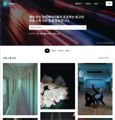 펙셀스는 한글 사이트가 있어서 사용에 편리하고 동영상도 찾을 수 있어서 콘텐츠를 만드는 사람의 입장에서 편리한 점이 많습니다.
