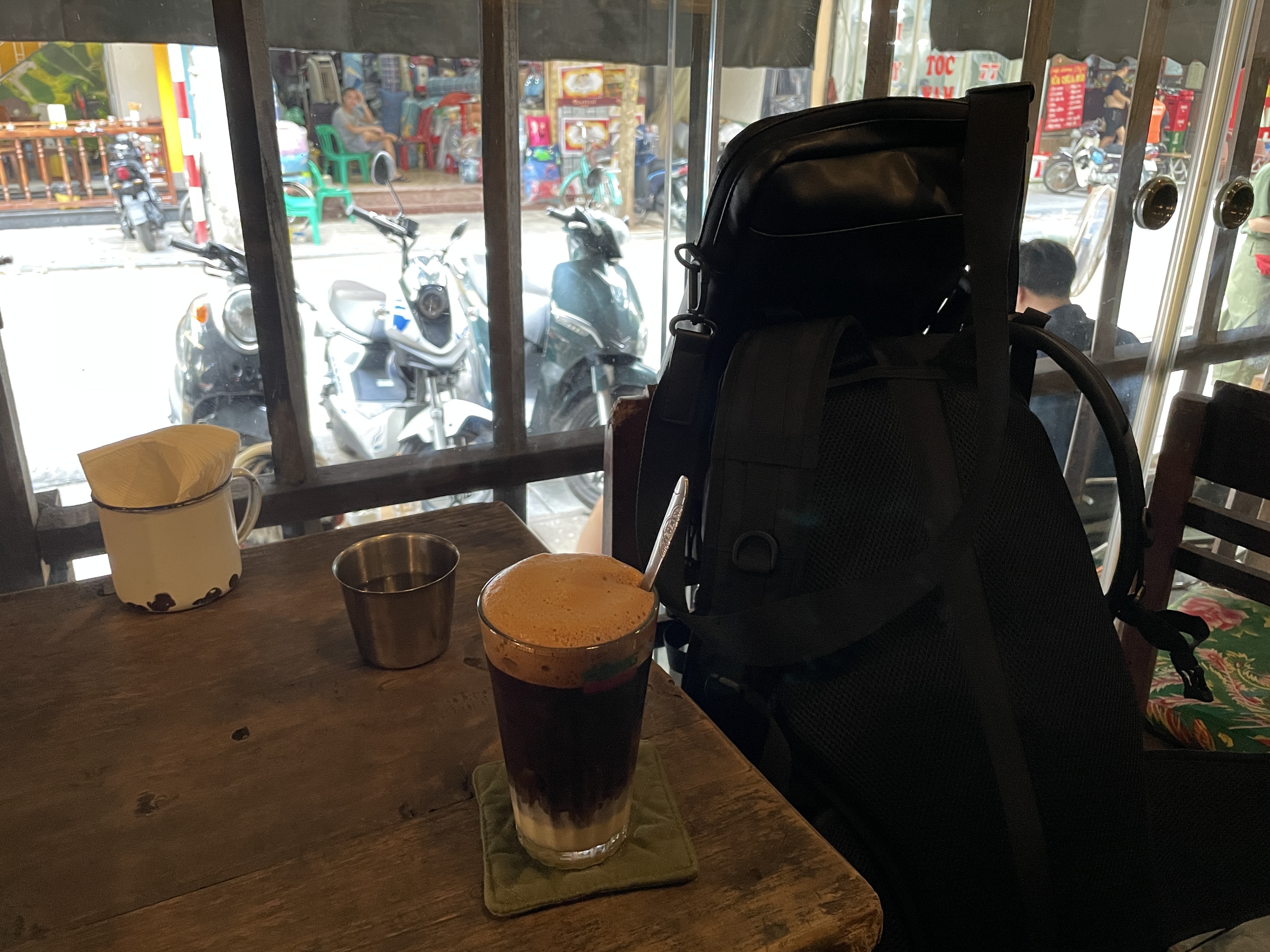 든든한 한 끼를 먹고 베트남에 왔으면 꼭 먹어야 한다는 콩카페에서 커피를 마셨다. 커피를 마셔야겠다는 마음보다는 그늘에 시원한 바람을 맞고 싶다는 생각이 간절했다. 41000동짜리 커피, 우리나라 편의점 커피와 같은 가격으로 진하고 시원한 커피를 마시며 여행에 여유를 더할 수 있다는 것이 만족스러웠다. 낭만 있는 여행자라면 거리의 반상을 선택했어야 했지만 내리쬐는 태양 앞에 낭만은 없었다. 에어컨이 있는 실내를 선택했다.