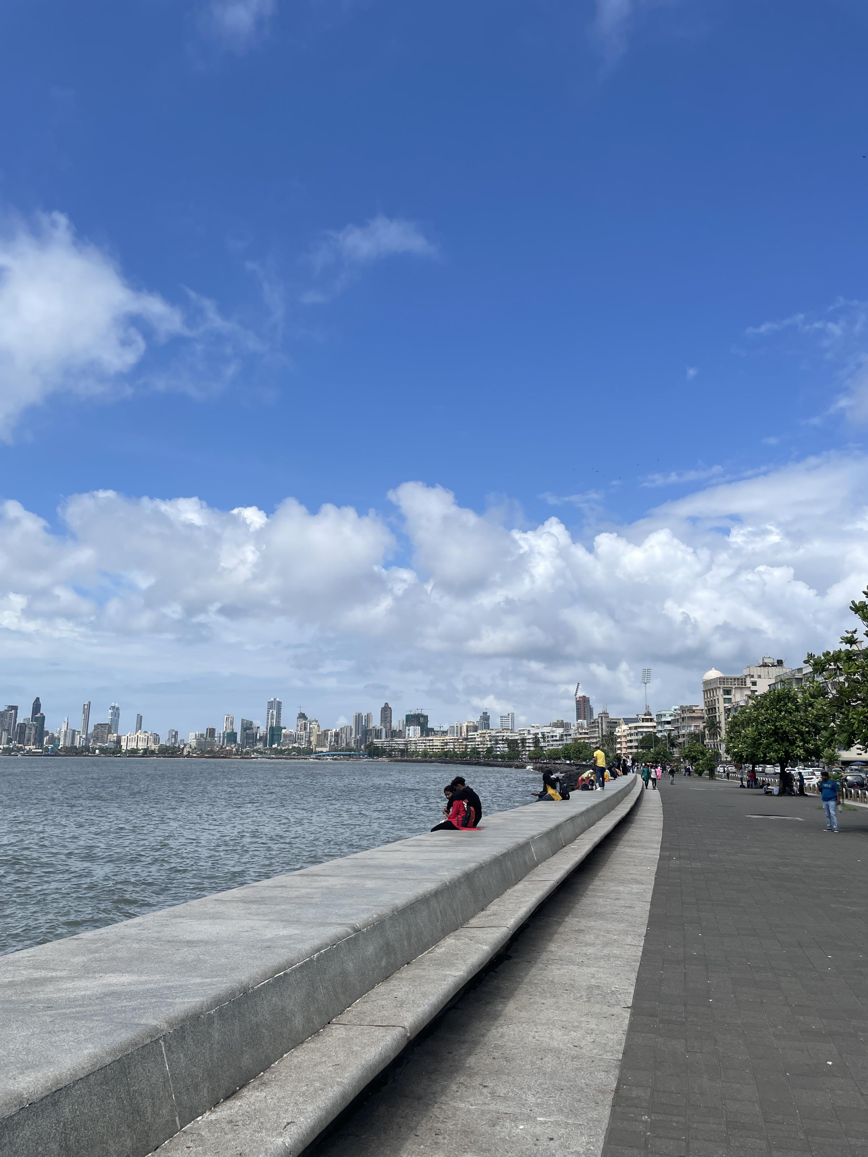 더운 날씨에 역 근처를 구경하다가 근처의 마린드라이브까지 걸어갔다. 아라비아해를 따라 걸을 수 있는 해안길을 따라 걸었다. 해안길을 따라 현지 가족들이나 커플들이 바다를 구경하며 휴식을 하는 분위기였다. 걸을 때는 바다를 보면서 걸어서 꾀 길다는 느낌만 느꼈지만 걸은 거리가 4.5km라는 것은 글을 쓰는 지금 검색을 하면서 알게 되었다. 이상한 배낭을 멘 한국인이 걸어 다니는 모습이 신기했던지 여러 인도인 가족들은 자신들과 사진을 찍자고 했다. 여러 나라를 여행했지만 처음 겪는 신기한 경험이었다. 인도를 여행하는 동안 유명인이 된듯한 간접 경험을 했다.