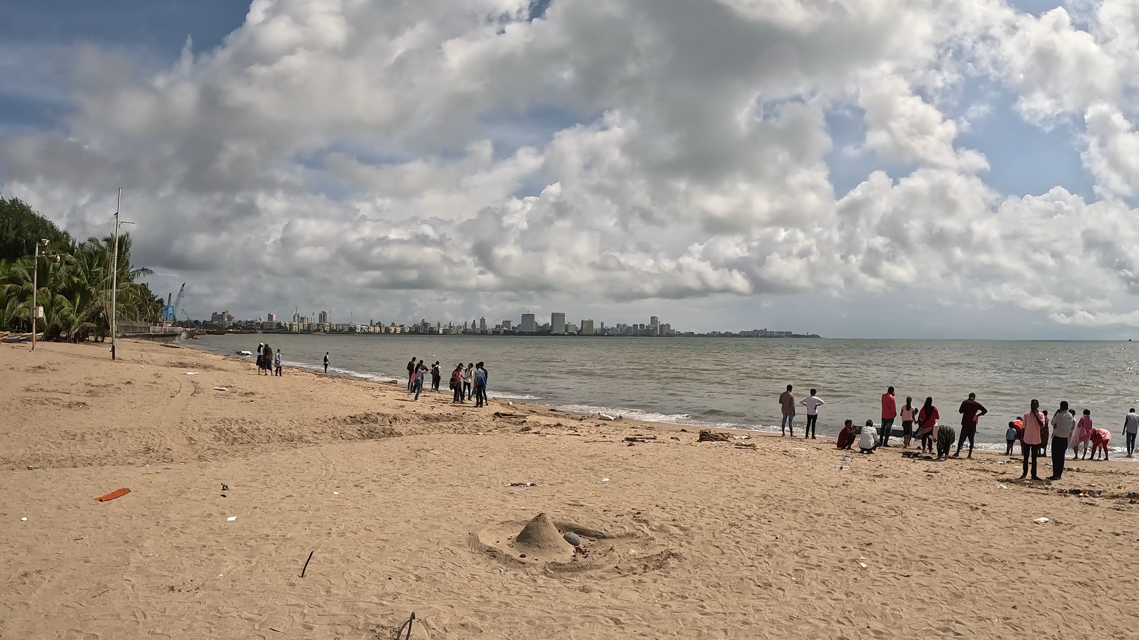 정처 없이 걷다 보니 초파티 해변까지 걷게 되었다. 해변 초입 포장마차들에서 음식을 파는 모습과 해변에서 사람들이 모여서 구경을 하고 있는 모습을 보았다. 덥고 오래 걸어서 정신이 없는 상태에다 바다 근처에서 30년을 살아서 그런지 큰 감흥은 없었다.